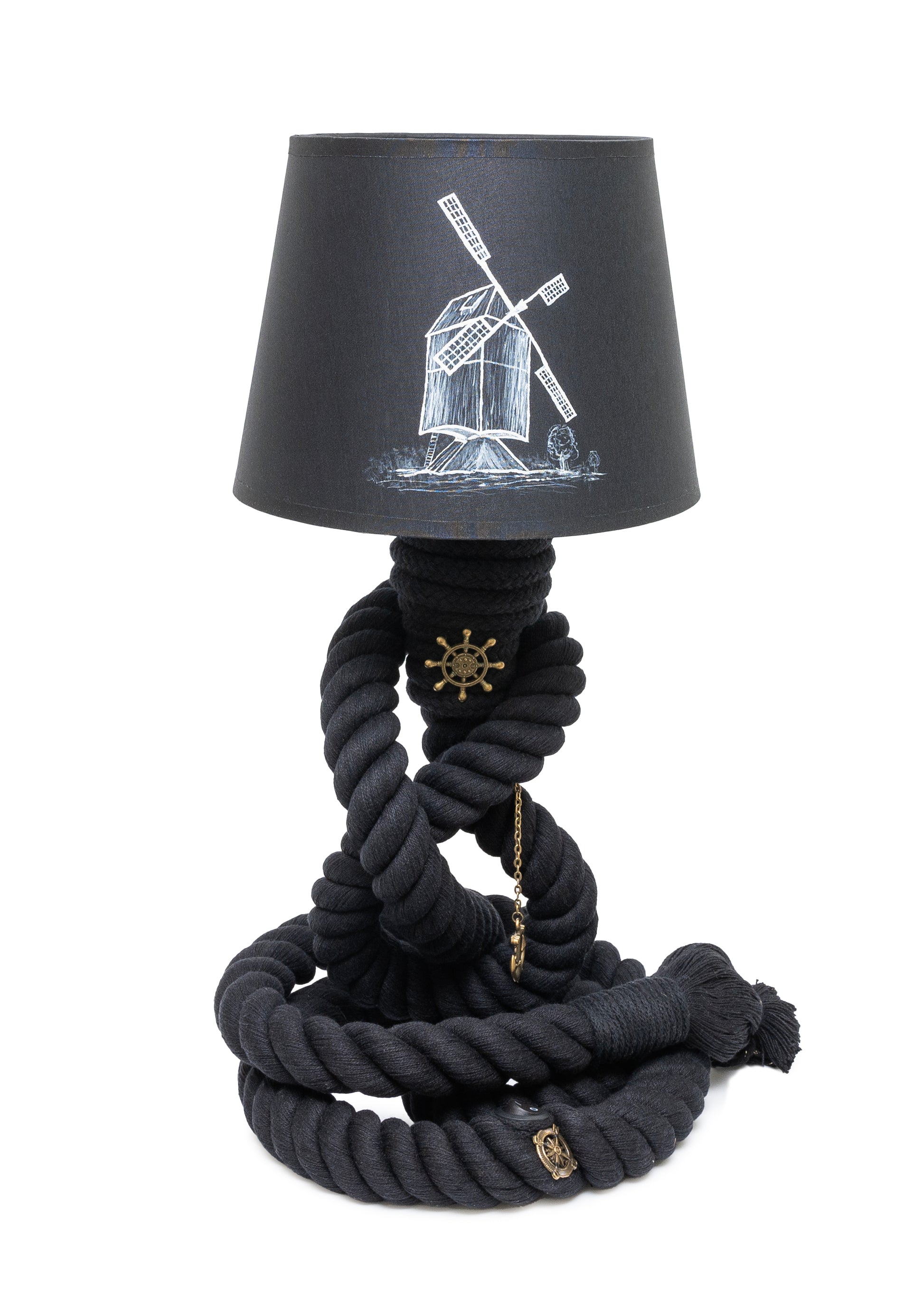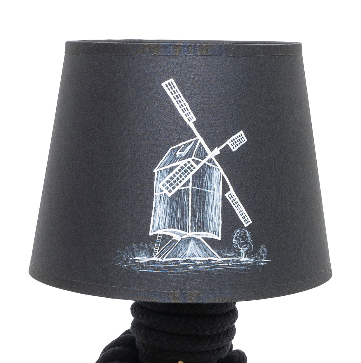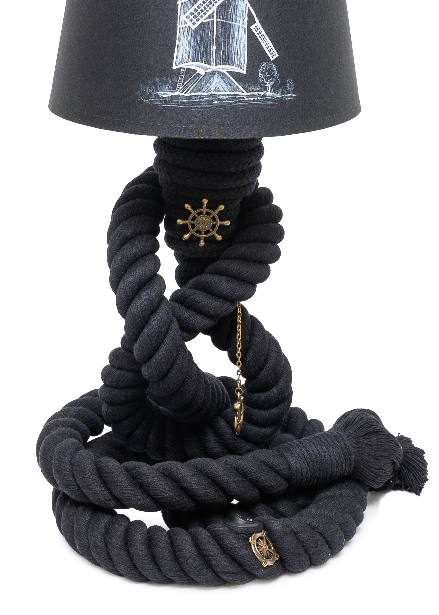 Den här bordslampan kommer inte bara att lysa upp ditt rum, utan också bli dess huvuddekoration. Tillverkad med omsorg om varje detalj, framstår den som elegant och robust. Det svarta repet som är lindat runt metallelementen och lampskärmen med Furusund motiv skapar en unik look som fångar ögat.